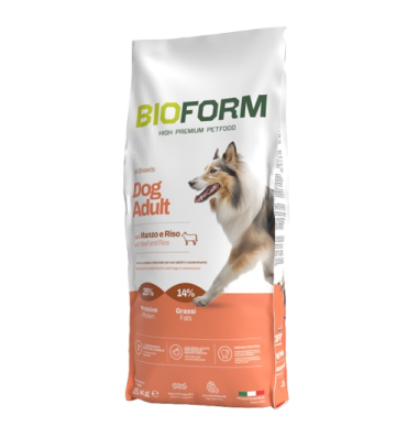 Bio Form dog adult all breeds s hovädzím mäsom a ryžou je krmivo High Premium Quality doplnené bielkovinovým hydrolyzátom čerstvého mäsa pre dospelých psov všetkých veľkosti, navrhnuté a vyvinuté pre jedincov so strednou/intenzívnou dennou fyzickou aktivitou. Vhodné najmä pre psy, ktoré majú citlivú srsť a pokožku, alebo majú problémy s výživou. Prísady z jahňacieho mäsa sú zárukou vynikajúcej úrovne energie, ktorá sa ľahko vstrebáva a je vysoko stráviteľná.