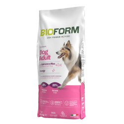 Krmivo High Premium Quality doplnené bielkovinovým hydrolyzátom čerstvého mäsa pre dospelých psov všetkých veľkosti, vhodné vždy vtedy, keď si vyžadujú vysoký príjem bielkovín, ale s vyváženým príjmom lipidov. Vysoký obsah bielkovín podporuje fyzickú vytrvalosť a uľahčuje rýchle zotavenie svalového aparátu. Bio Form adult all breeds energy však obsahuje menšie množstvo tukov a vysokokvalitné suroviny, kuracie mäso a ryža.
